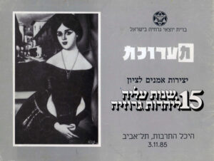 Similarly, in 1985, Jacob took part in organizing an art exhibition to commemorate 15 years of Jewish Georgian immigration to Israel. The exhibition was held at the Mann Auditorium (Hall of Culture) in Tel Aviv. Guests of honor included former Israeli Prime Ministers Yitzhak Shamir and Ariel Sharon, Minister of Tourism Avraham Sharir, and Arieh Dulzin, President of the World Zionist Organization. Jacob’s painting of his wife was chosen for the cover of the exhibition catalogue, with a Georgian landscape as the background.