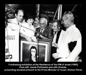 Jacob also played a key role in mobilizing the Georgian community to support philanthropy in Israel. For example, in 1985, he helped organize and participated in an art exhibition that raised funds for Ethiopian refugees. The fundraiser took place at the official residence of Prime Minister Shimon Peres.