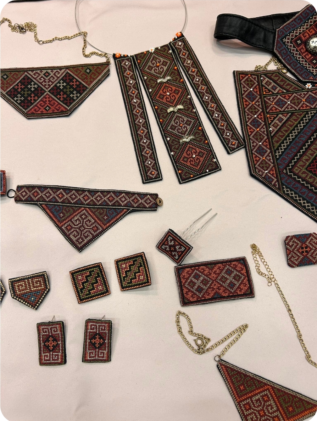“Nachrela” is a distinctive form of embroidery originating from the mountainous regions of Georgia, particularly from the Khevsureti area. This craft is characterized by its intricate geometric patterns, often featuring stylized motifs such as crosses, stars, and spirals. These designs are not merely decorative; they hold deep symbolic meanings, often associated with protection, spirituality, and identity.