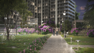 Another advantage of the project is the residential environment itself. Residents will enjoy a 15,000 sq.m. green courtyard and a lilac garden, creating a peaceful setting within the city’s active lifestyle. The complex also includes sports fields, a neighborhood lounge, a gym, and other important infrastructure elements.