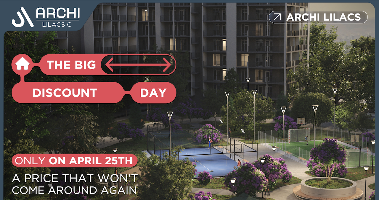 “Archi,” the #1 development company in Georgia, continues its tradition and will hold another big discount day on April 25. This time, the offer applies to Block C of the “Archi Lilacs” project located in Mukhiani. This is an exclusive opportunity available for one day only. On this day, apartments can be purchased at a price that will not be repeated. That’s why each “Archi” big discount day attracts a record number of interested buyers.